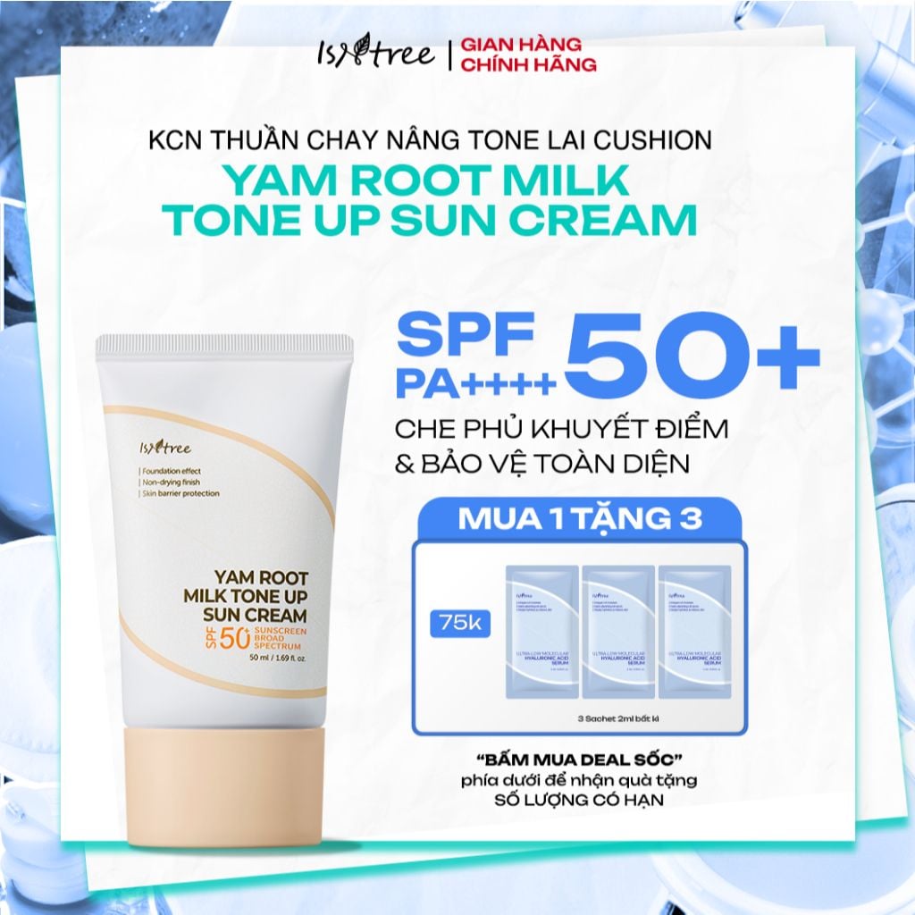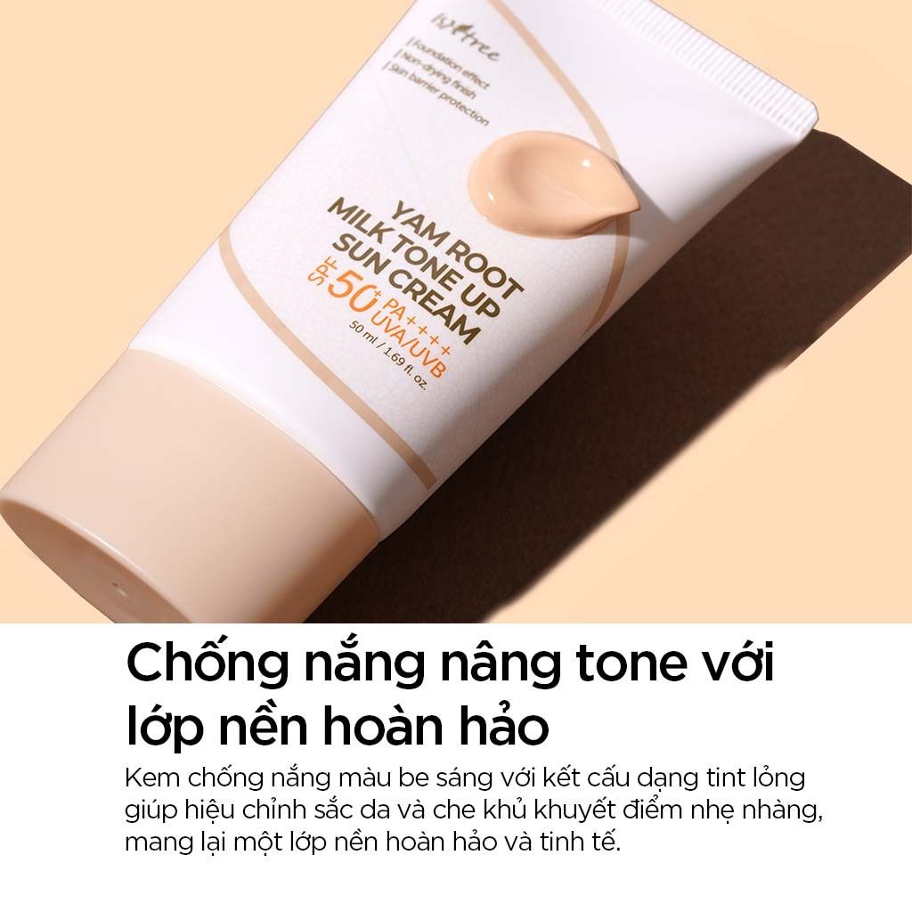 Kem Chống Nắng Vật Lý Thuần Chay Nâng Tone & Bảo Vệ Da Toàn Diện Isntree Yam Root Milk Tone Up Sun Cream 50ml