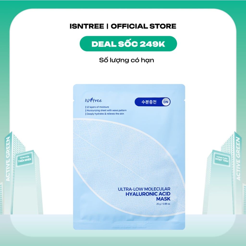 Mặt nạ HA siêu vi nano cấp ẩm chuyên sâu Isntree Ultra-low Molecular Hyaluronic Acid Mask 25g