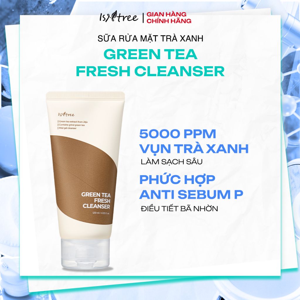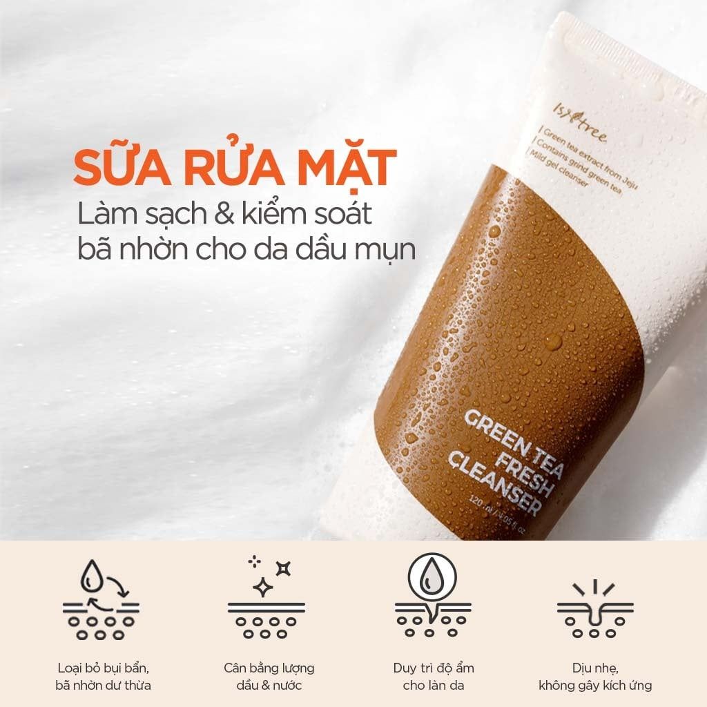 Sữa rửa mặt Trà Xanh làm sạch và kiểm soát bã nhờn Isntree Green Tea Fresh Cleanser 120ml
